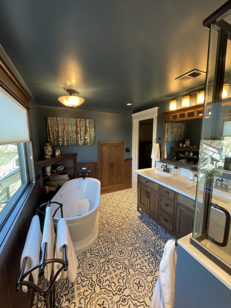 We completely renovated the master bath and added a new bathroom by converting a closet. the custom cabinets and upgraded feature were all consistent in keeping with the overall craftsman look and feel of the residence.